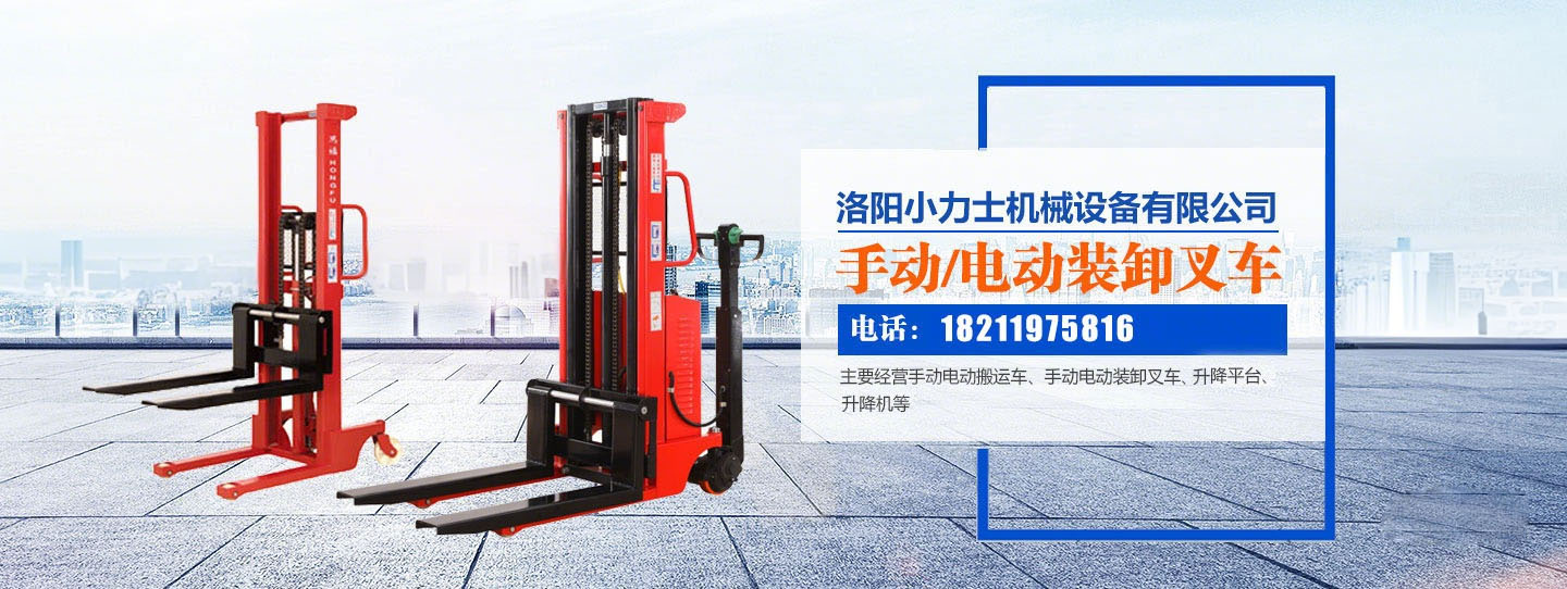 洛阳小力士机械设备有限公司(原湖北宏力液压科技有限公司驻河南洛阳办事处,是生产起重搬运机械的专门厂家之一。)本公司位于洛阳五洲国际工业博览城B区37栋110号,是河南西部专业销售物料、搬运设备、高空作业设备、储存设备的公司。公司主要经营有手动/电动搬运车、手动/电动装卸叉车、手动/电动叉车、移动登车桥、固定登车桥、移动式升降平台、固定式升降平台、壁挂式升降平台,可定制各种非标、异形产品。承接叉车修理、租赁业务。